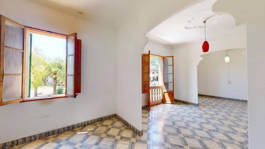Set in the heart of Sa Pobla, this townhouse enjoys a privileged position directly opposite a charming green zone, offering open views and a calm atmosphere. Within walking distance to shops, cafés, and local amenities, the location perfectly balances convenience and tranquillity-ideal for creating a personalised home in an authentic Mallorcan village.
