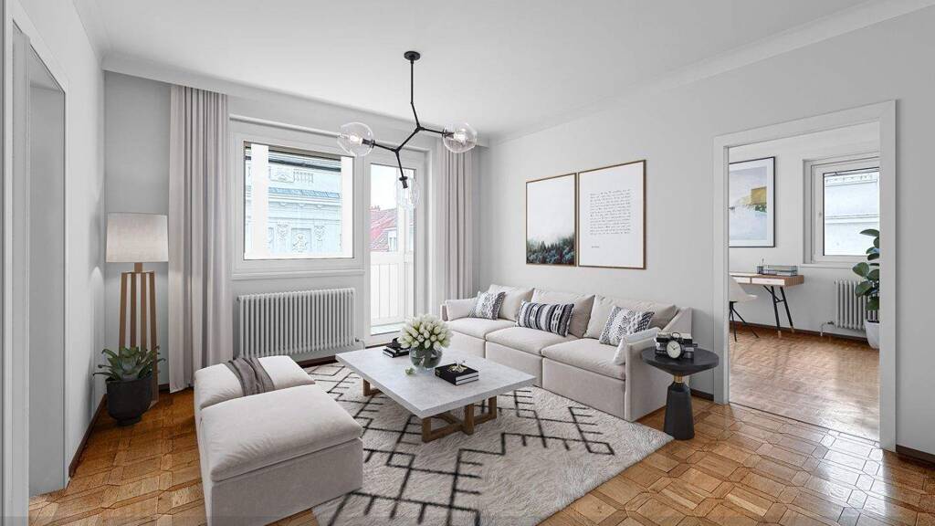 Die dargestellten Visualisierungen dienen ausschließlich als unverbindliche Gestaltungsvorschläge und sollen beispielhaft zeigen, wie die Wohnung nach einer Sanierung aussehen könnte. Sie sind nicht Bestandteil des Kaufgegenstandes und nicht im Kaufpreis enthalten.
