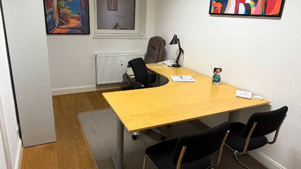 Beschreibung: Der Raum überzeugt durch hohe Decken, Eiche-Holzboden, Teppich, und ist vollständig möbliert (Schreibtisch, Bürostuhl, Schränke). Hier können Sie einziehen und direkt loslegen - ohne versteckte Zusatzkosten.