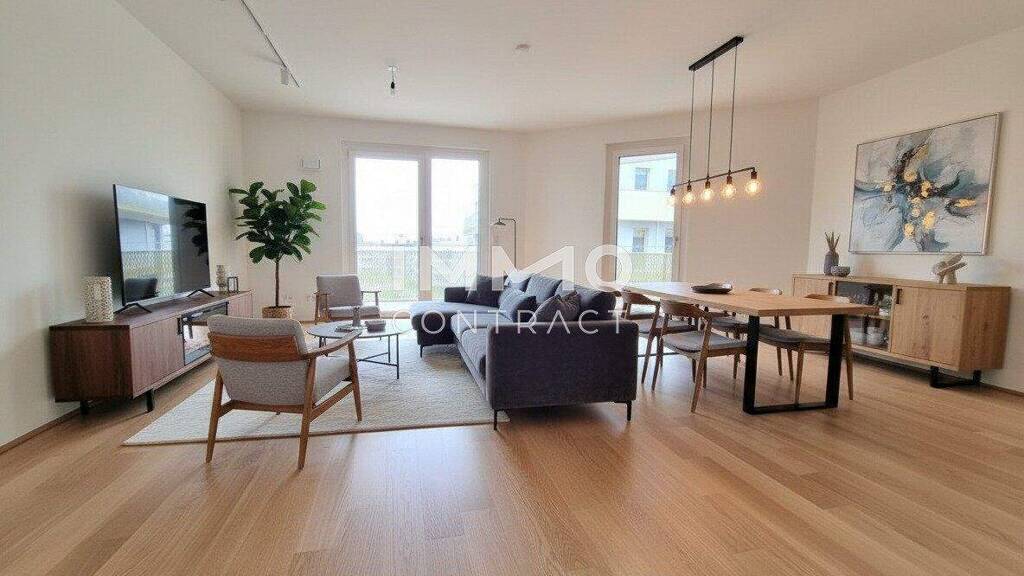 Die Ausstattung entspricht einem hochwertigen Neubau-Standard: Parkettböden in Wohnräumen, Fliesen in Bad und Nebenräumen, Fußbodenheizung mit sommerlicher Temperierung, mehrfach verglaste Fenster sowie elektrisch gesteuerter außenliegender Sonnenschutz. Sicherheitseingangstür, Lift und Kellerabteil runden das Angebot ab.