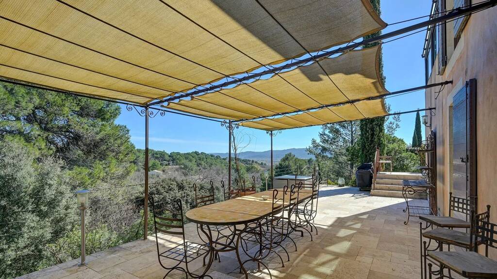 For leisure enthusiasts, a petanque court is available. In addition, a large carport will protect your vehicles from the elements. The various shaded terraces invite you to enjoy moments of relaxation while admiring the breathtaking view. Whether for an al fresco meal or a quiet moment, every corner of this property is a true invitation to serenity.