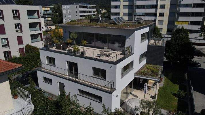 Dieses beeindruckende Wohn- und Bürohaus, erbaut im Jahr 2012 in hochwertiger Massivbauweise, bietet sowohl einen erstklassigen Wohnkomfort als auch eine attraktive Geschäftslösung in bester Werbelage von Bregenz.
