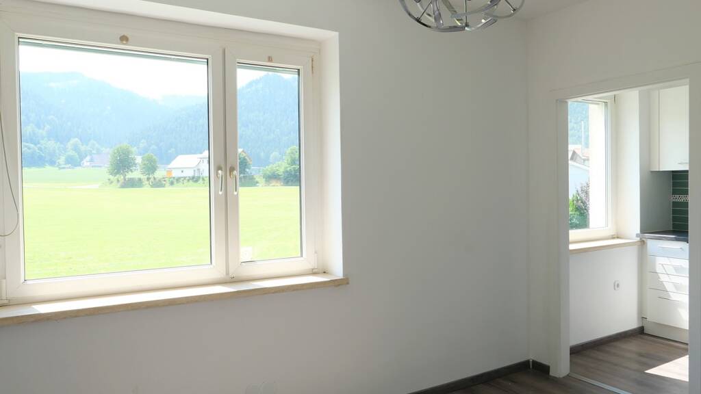 Die ca. 46 m² Wohnfläche im 1. Stock eines Mehrparteienhauses teilen sich wie folgt auf: Vom Vorraum aus gelangt man in das Wohn-/Esszimmer, das Schlafzimmer und das Badezimmer mit WC. Weiters erreicht man über das Wohn-/Esszimmer die neue Küche. Der sensationelle Ausblick ins Grüne und auf die umliegenden Berge aus Küche, Wohn-/Esszimmer und Schlafzimmer ist einzigartig.