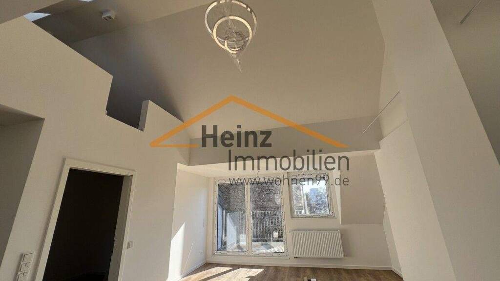 Ein architektonisches Highlight bildet die ausgefallene Treppe, die zur Empore führt. Diese bietet zusätzlichen Raum, der sich ideal als Schlafbereich, Homeoffice oder Rückzugsort nutzen lässt, und verleiht der Wohnung eine besonders charmante Loft-Atmosphäre.