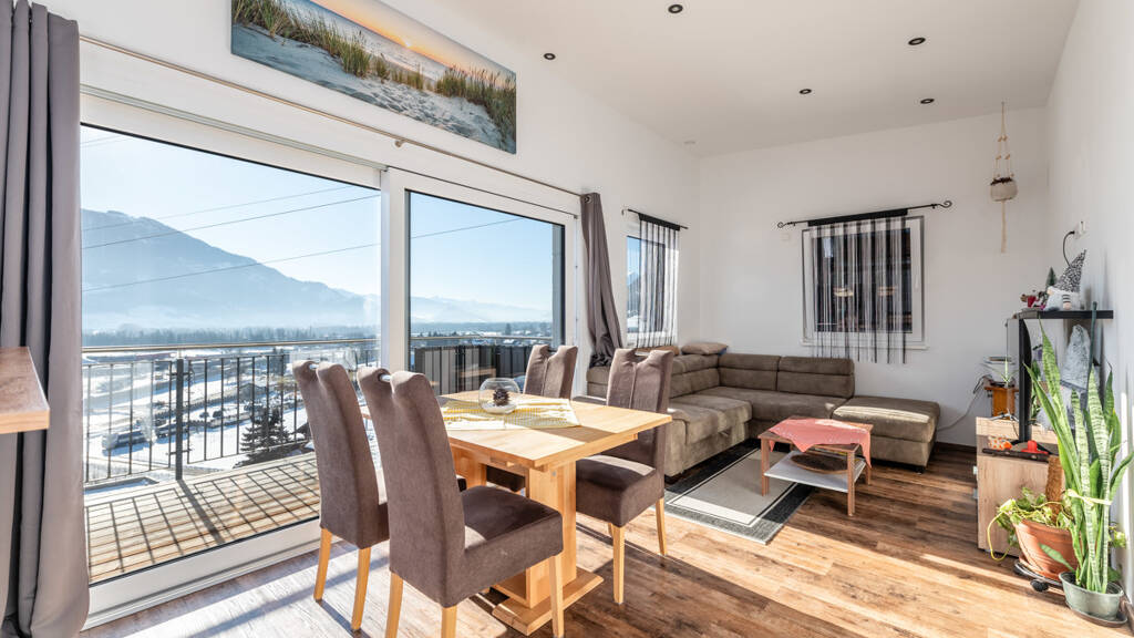 Die besagte Wohnung befindet sich in Weißenbach bei Liezen in einem modernen Zweiparteienhaus, welches im Jahr 2021 erbaut wurde. Die Lage des Hauses am Hang bietet einen malerischen Ausblick über Liezen und das halbe Ennstal.