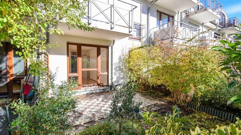 Der Garten auf der Südseite der Wohnung ist ideal für Sonnenliebhaber, da er den ganzen Tag über Sonnenlicht erhält. Eine schöne Terrasse rundet das Angebot ab und lädt zum Verweilen und Entspannen im Freien ein.