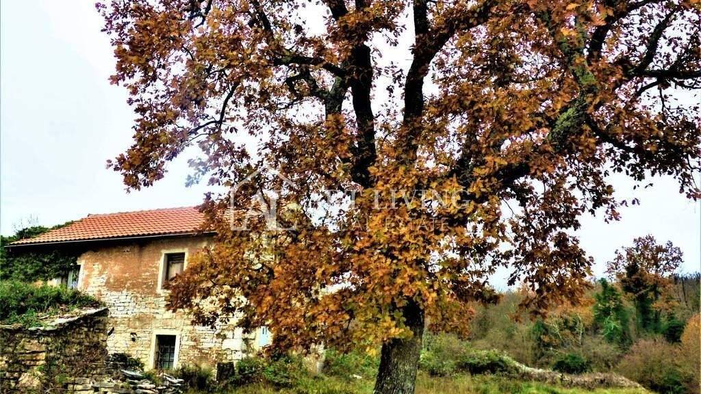 Ein autochthones istrisches Steinhaus zum Renovieren, Grundrissfläche ca. 80 m2 (F+1 160 m2) auf einem Grundstück von 4500 m2. davon sind 3615 m2 Bauland und 885 m2 landwirtschaftliche Flächen.