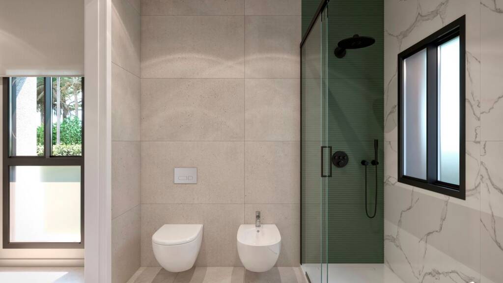 Die Villen verfügen über eine Klimaanlage, 6 Photovoltaik-Solarzellen, Bosch-Küchengeräte (Backofen, Induktionskochfeld, Dunstabzugshaube, Mikrowelle, Geschirrspüler und Waschmaschine), Einbauschränke und elektrische Jalousien in allen Schlafzimmern, LED-Beleuchtung innen und außen, einen angelegten Garten mit Kunstrasen, Palmen, Sträuchern und einem Bewässerungssystem, ein privates Schwimmbad von 22m2 mit Vorinstallation für eine Wärmepumpe, Außendusche, und es gibt einen privaten Parkplatz auf dem Grundstück mit Installation für eine Ladestation für ein Elektrofahrzeug.
