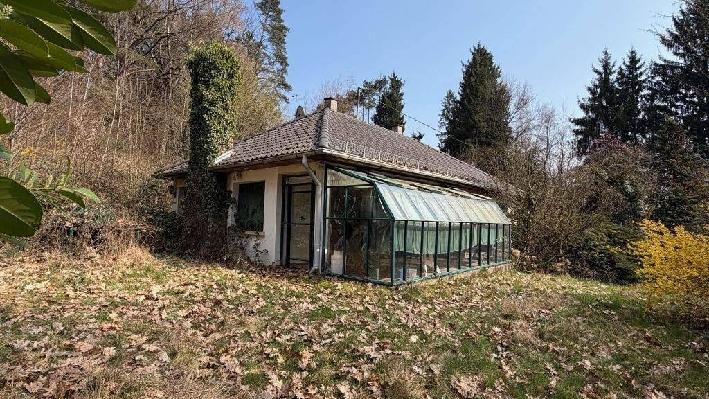Netter Landhaus-Bungalow zum Renovieren, Bj. um 1960, massive Bauweise, solide Bausubstanz, ca. 80 m² Wohnfläche auf einer Ebene, voll unterkellert mit Garage und Werkstatt, ca. 23.900 m² Waldgrundstück mit eigener Quelle, Naturzone, nicht weiter bebaubar, Hanglage, nach Süden ausgerichtet, z.T. eingezäunt, nicht einsehbar