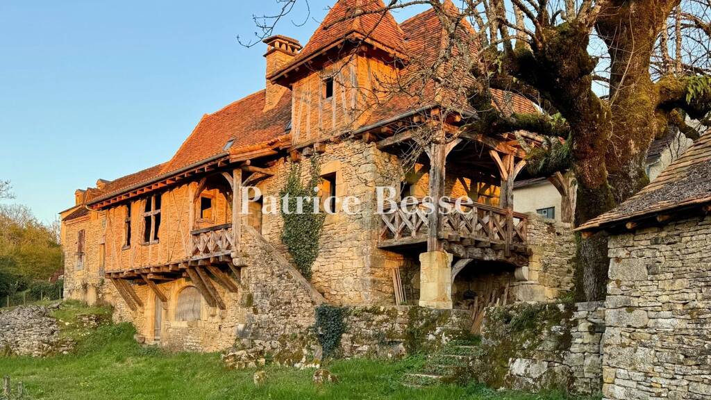The house was built on a hillside, next to a hamlet that spreads along the hill and over the plateau. At ground level, the property's rear side is edged with a public track that leads to a craftsman's barn before running along the river. On the other side of the track, a triangular plot of land offers space and light in front of the entrance, ensuring privacy from the house opposite it. Further up the track is a second barn, surrounded by two gardens. It looks over a raised terrace on one side of the house. Two old lime trees cast shade over this raised terrace, which forms an undisturbed sanctuary as it is largely enclosed by a protective ruin and a high stone wall against which an access staircase has been built from scratch. Several steps further down lies the garden level, made up of a vast terrace that overlooks a sheep meadow. Its sweeping 180-degree view takes in the valley, the river and the village. A stone's throw away, on the plateau, a plot of orchard land that can be built upon is offered as an option. It covers around 1,300m².