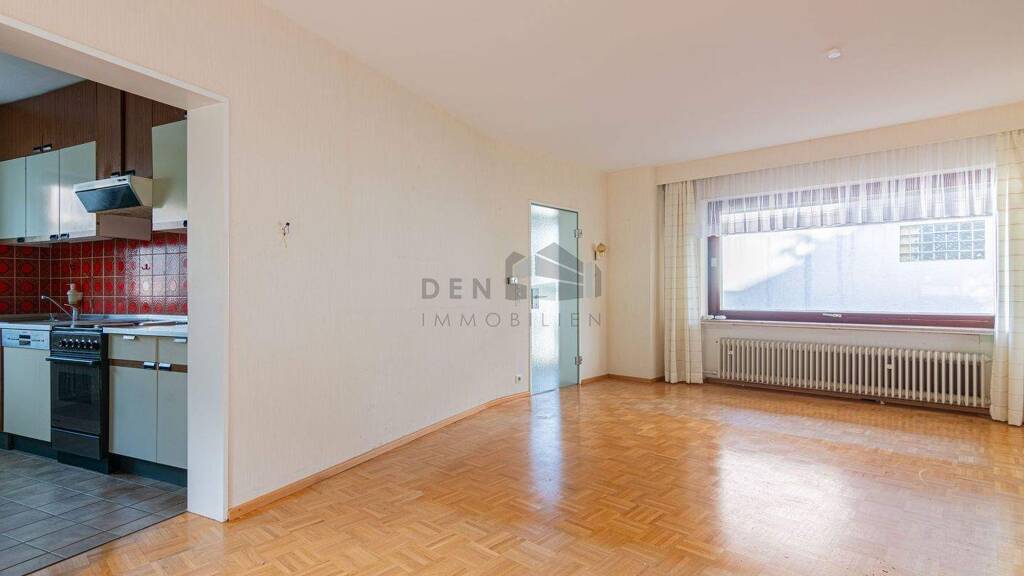 Im Erdgeschoss finden Sie das großzügige Wohnzimmer, das durch eine Ziehharmonika-Trennwand eine besondere Atmosphäre erhält. Die Einbauküche entspricht noch dem Charme der 70er Jahre und bietet eine solide Grundlage für eine Modernisierung. Das Gäste-WC sowie der Zugang zu der südlich ausgerichteten Terrasse mit Waschbetonplatten bieten Ihnen zusätzlichen Komfort. Die Holzrahmen-Fenster mit 2-facher Isolierverglasung sorgen für ein angenehmes Wohnklima, während die elektrischen Rollläden (Kunststoff) zusätzlichen Komfort bieten.