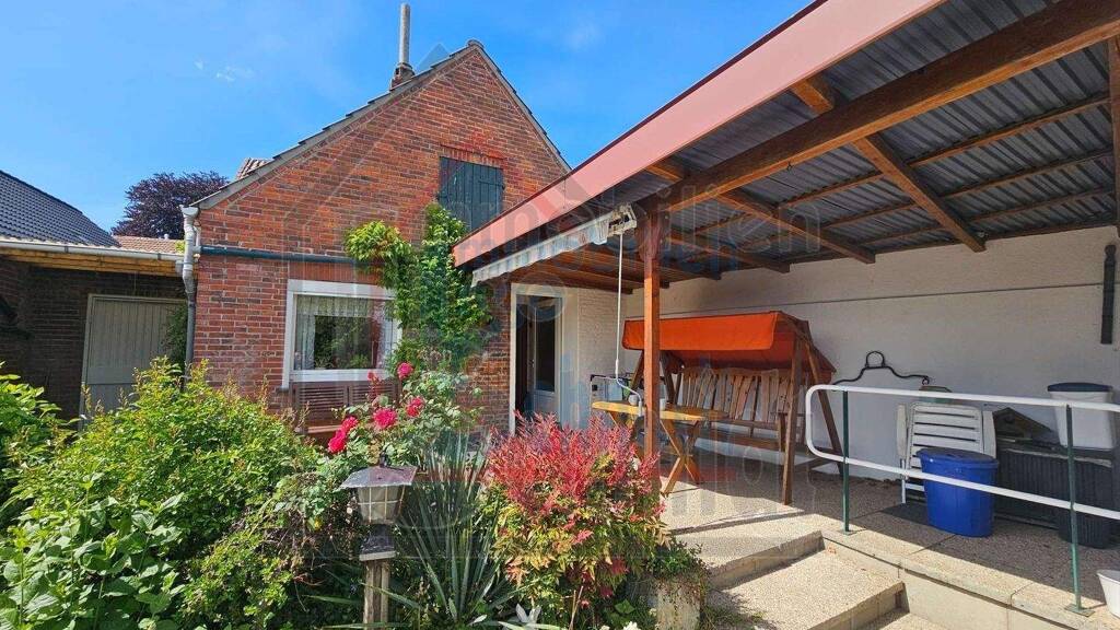 Hier erwartet Sie eine geräumige überdachte Terrasse mit einer Markise und ein blühender Garten. Des Weiteren werten ein Gewächshaus sowie ein Schuppen die Gartenanlage des Einfamilienhauses auf.