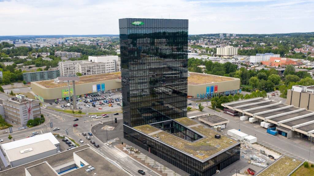 Der ca. 70 m hohe BITZER Turm ist schon von weitem zu erkennen und beeindruckt durch seine imposante Architektur. Der Büroneubau mit insgesamt 17 Geschossen setzt sich aus dem Büro-Turm sowie dem angrenzendem zweigeschossigem Sockelgebäude zusammen.
