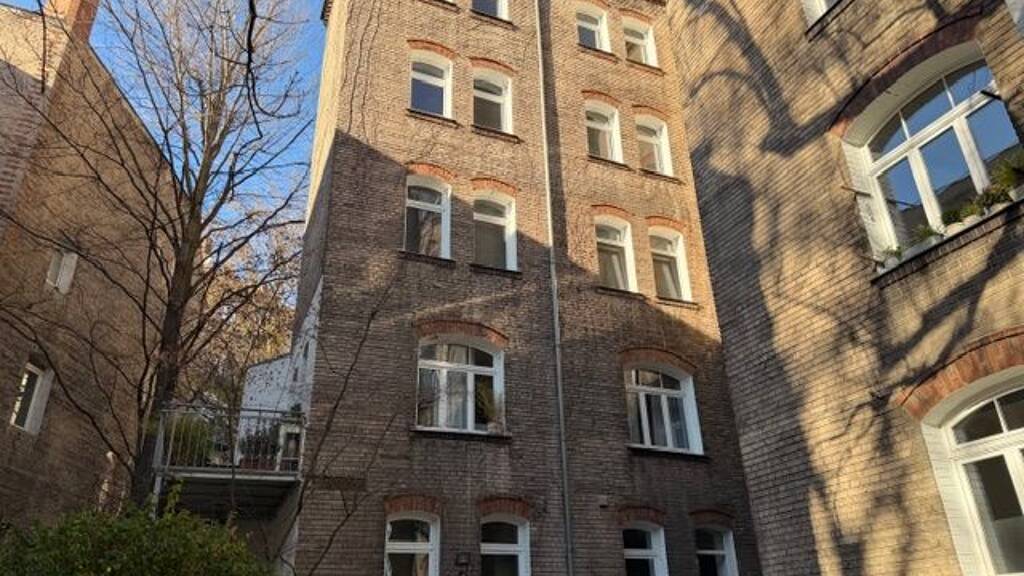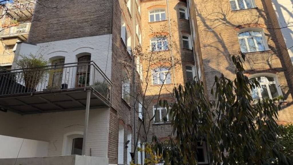 Renovierte 6-Zimmer-Souterrain-Eigentumswohnung mit 2 Balkonen im Jugendstilhaus mit Zugang zu dem begrünten Innenhof, hofseitig 3 Zimmer in Erdgeschosshöhe, straßenseitig 3 Zimmer hälftig im Untergeschoss mit Fenster,