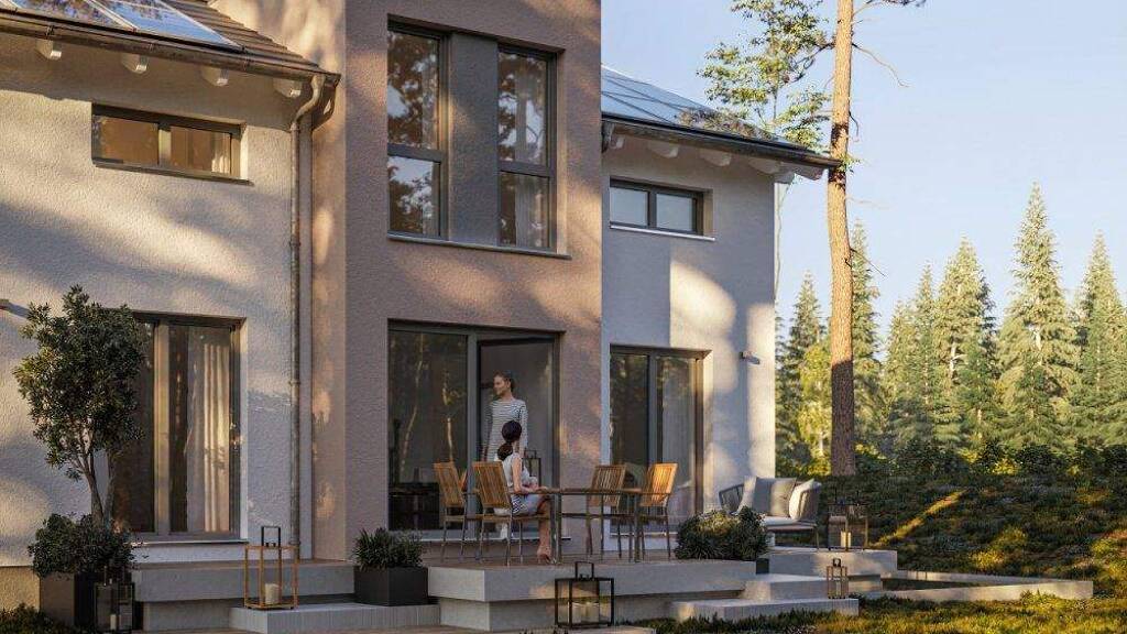 Das Haus ist auf einem realen Baugrundstück geplant oder auf einem Grundstück in einer Planungsphase. Die Bilder zeigen ggf. Extras, die im Rahmen des Bebauungsplans noch geprüft werden müssen.