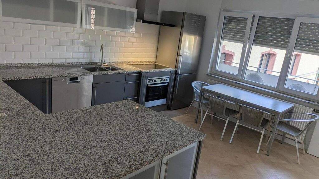 Die Wohnung wurde vollständig renoviert und wird mit komplett ausgestatteter Küche (Kühlschrank 70cm breit, Spülmschine, Mikrowelle, Ofen, Herd, Marmorplatte ) vermietet.