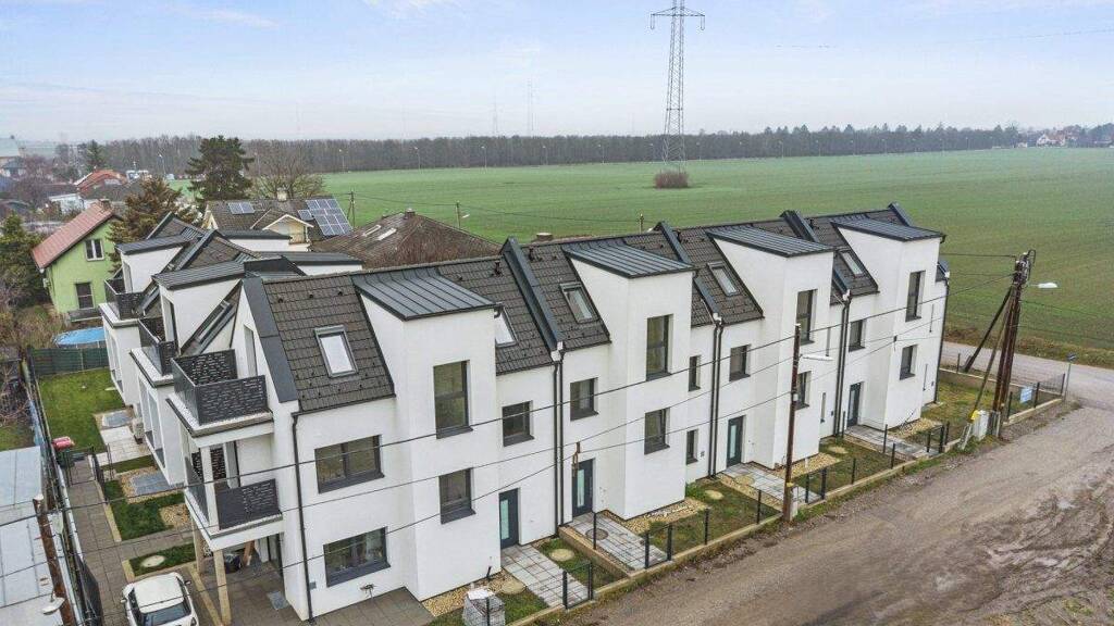 In absolut ruhiger Lage in Wien 22, umgeben von Feldern und Grünflächen wurden sechs moderne Reihenhäuser auf Eigengrund errichtet.
