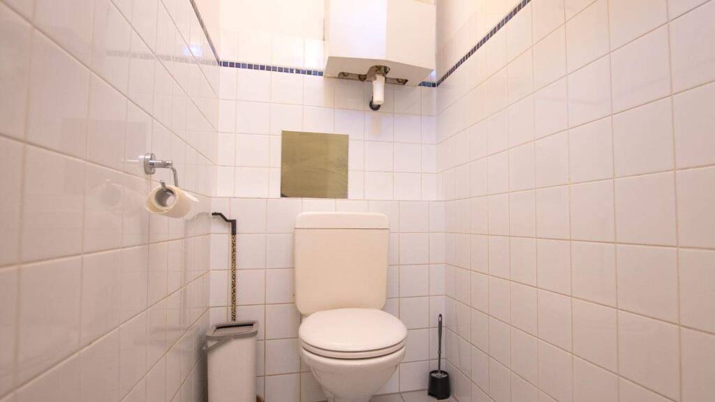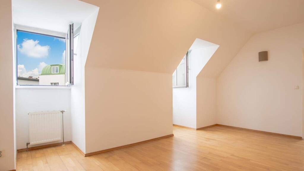 Als gemütlicher Rückzugsort dient das Schlafzimmer, das durch eine integrierte Gaube wertvollen zusätzlichen Platz bietet. Ergänzt wird das Raumangebot durch ein komplettes Badezimmer mit Badewanne und Waschmaschinenanschluss, sowie ein separates WC in funktionaler Grundausstattung. Für maximalen Komfort im Alltag sorgt der eigene PKW-Garagenstellplatz, der trotz der zentralen Lage ein völlig unbeschwertes Ankommen in Ihrem neuen Zuhause ermöglicht.