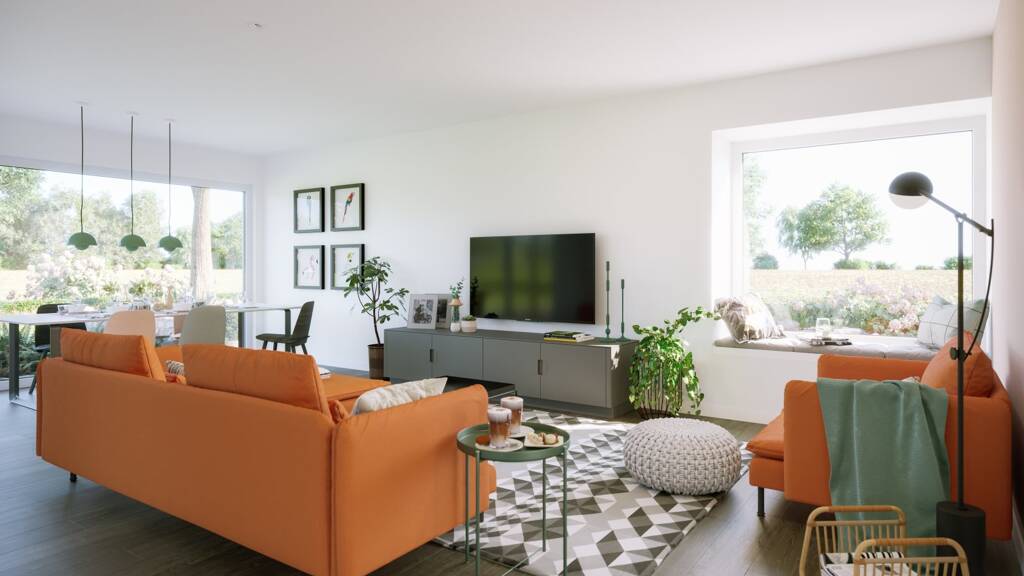 Direkt morgens auf die Terasse gehen und den Sonnenaufgang genießen? Vom Schlaf-, Kinder- und Wohnzimmer aus? Geht im Bungalow easy. Denn hier liegen alle wichtigen Zimmer direkt beieinander auf einer Ebene.