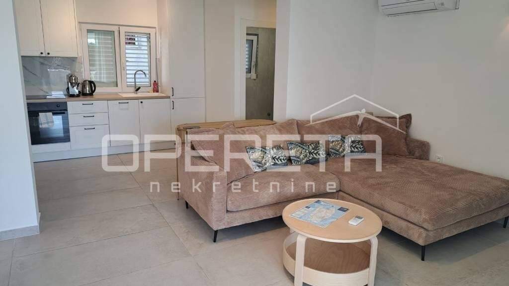 ZU VERKAUFEN, NEU RENOVIERTE WOHNUNG IN STÄDTISCHER VILLA, VIS, 100 m VOM MEER ENTFERNT Im Erdgeschoss einer Stadtvilla, in unmittelbarer Nähe des Meeres in Vis gelegen, steht eine 60 m große Wohnung zum Verkauf. Die Wohnung besteht aus einem Wohnzimmer mit Küche und Essbereich, zwei Schlafzimmern und einem Badezimmer. Die Wohnung hat Zugang zu einer überdachten Terrasse von 15 m2 mit einem Kinderspielplatz darunter und einem Garten von 90 m2 mit einem Grill und einer Solardusche. Zur Wohnung gehört außerdem ein PKW-Stellplatz.