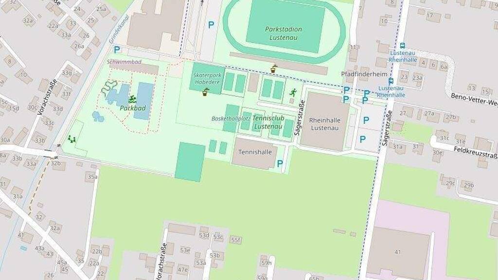 Das direkt angrenzende "Parkstadion" wird von den Leichtathleten genutzt und erweist sich als angenehmer Nachbar. Zudem hält es den südlichen Bereich praktisch frei von weiterer Verbauung.