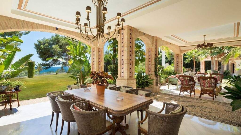 Beeindruckende freistehende Villa mit sieben Schlafzimmern in einer kleinen und prestigeträchtigen Wohnanlage mit nur sieben Villen und 24-Stunden-Sicherheitsdienst. Erbaut im Jahr 2012 im andalusischen Stil, mit marokkanischen und arabischen Einflüssen und modernster Handwerkskunst. Die imposante Eingangshalle mit einer Höhe von 7m wird von einer Kuppel von gewaltigen Ausmaßen gekrönt und führt in einen hellen und weitläufigen Innenhof, der Licht in das ganze Haus lässt. Im Erdgeschoss finden Sie einen separaten Esszimmer, ein großes Wohnzimmer, ein zusätzliches Büro und eine geräumige Luxusküche. Das Atrium mit seinem charmanten Wasserspiel ist auf dieser Etage zugänglich und das Wohnzimmer führt in den üppigen Garten mit viel Privatsphäre und schönem Panoramablick auf das Meer. Angrenzend an den langen Pool befindet sich ein separates Poolhaus mit Essbereich, Badezimmer und Ankleidezimmer mit tropisch angelegten Gärten. Im ersten Stock befinden sich drei große Schlafzimmer und ein Salon, der in ein zusätzliches Schlafzimmer umgewandelt werden könnte. Jedes Schlafzimmer verfügt über ein eigenes Bad und einen eigenen Balkon mit Panoramablick, wobei das Hauptschlafzimmer über einen großen begehbaren Kleiderschrank verfügt. Im Untergeschoss des Hauses befinden sich eine riesige Garage für 5 Autos, ein authentischer Weinkeller, eine separate Wohnung mit zwei Schlafzimmern für Gäste oder Personal, ein Kinoraum, ein Spielzimmer, eine Sauna und der Technikraum mit einem Heizsystem, das effizient von Bioenergiepaletten gespeist wird. Jede Etage ist zudem über einen Aufzug miteinander verbunden. Dies ist wirklich eine spektakuläre Villa in einer prestigeträchtigen Gegend der Goldenen Meile.