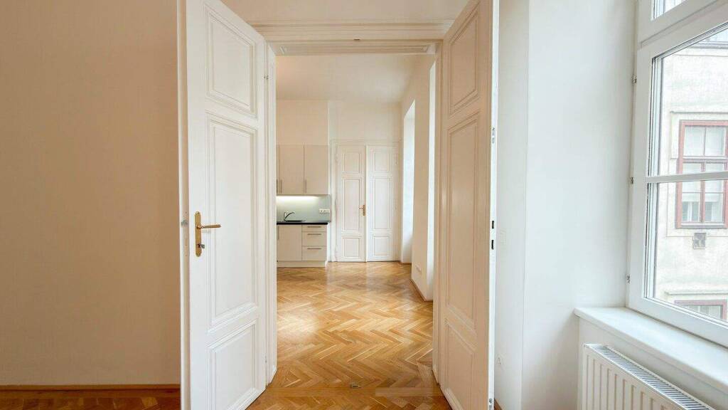 Diese elegante Altbauwohnung im zweiten Stock eines klassischen Wiener Altbaus vereint historischen Charme mit modernem Wohnkomfort auf höchstem Niveau. Beim Betreten empfängt Sie ein großzügiger Vorraum, der nicht nur einladend wirkt, sondern auch ausreichend Platz für Garderobe und praktischen Stauraum bietet. Klassische Flügeltüren und die charakteristischen hohen Decken verleihen den Räumen eine zeitlose Eleganz und schaffen ein besonderes Wohnambiente. Das großzügige Wohnzimmer bildet den Mittelpunkt der Wohnung: helle, lichtdurchflutete Räume, harmonische Proportionen und ein durchdachter Grundriss schaffen ein Wohngefühl, das sowohl Rückzug als auch repräsentative Momente für geselliges Beisammensein ermöglicht. Die geräumige Wohnküche mit moderner Einbauküche lädt zum Kochen, Genießen und gemeinsamen Verweilen ein und fügt sich nahtlos in das offene Raumkonzept ein. Ein ruhiges Zimmer mit Blick in den begrünten Innenhof bietet entspannte Rückzugsmomente und eignet sich ideal als Schlafzimmer oder Homeoffice. Zwei weitere gut proportionierte Zimmer eröffnen flexible Nutzungsmöglichkeiten - etwa als Kinder-, Gäste- oder Arbeitszimmer. Praktischer Stauraum mit integriertem Waschmaschinenanschluss sowie ein separat angelegtes WC mit Handwaschbecken runden das Angebot ab. Das elegante Badezimmer mit Kombination aus Badewanne und Dusche ermöglicht sowohl erfrischende Morgenrituale als auch entspannende Stunden am Abend. Diese Altbauwohnung besticht durch ihre großzügige Raumgestaltung, klassische Details und eine harmonische Balance zwischen Stil, Komfort und Funktionalität. Ein außergewöhnliches Zuhause für all jene, die Wert auf Qualität, Eleganz und ein besonderes Wohnflair legen.