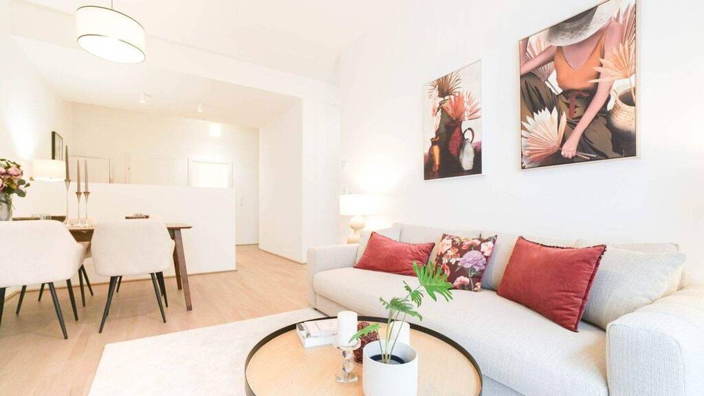 Die angeführten Fotos sind Beispielbilder einer bereits fertiggestellten Wohnung oder KI Visualisierung im Projekt.