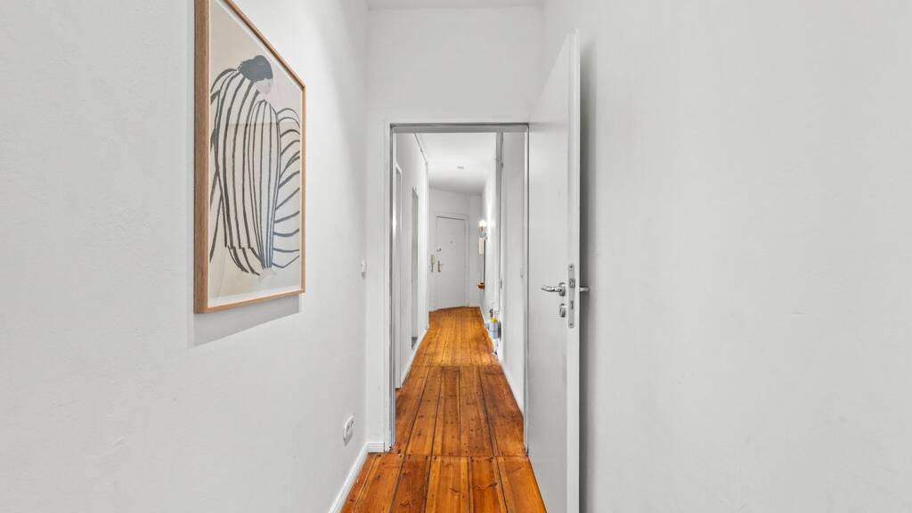Die Wohnung verfügt über zwei separat begehbare Zimmer, die beide zum ruhigen Innenhof ausgerichtet sind und dadurch ein angenehmes und zurückgezogenes Wohngefühl vermitteln. Ein langer Flur verbindet die einzelnen Bereiche der Wohnung und sorgt für eine klare und praktische Aufteilung. Die Raumstruktur ist alltagstauglich und bietet vielseitige Einrichtungsmöglichkeiten.