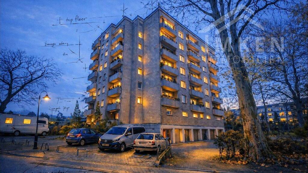 .Frisch sanierte Wohnung (2025) .Helles Wohnzimmer mit Zugang zum Balkon .Sonniger Balkon mit Blick ins Grüne .Modernes Badezimmer mit .Dusche .Badewanne .modernem Waschtisch .Handtuchheizkörper .großformatigen Fliesen .Neue Einbauküche in moderner Holzoptik mit hochwertigen Geräten .Schlafzimmer und weiteres Zimmer mit neuen Bodenbelägen .Schöner Parkettboden im Wohnbereich .Glatt verputzte Wände, moderne Farbgestaltung .Überarbeitete Innentüren und zeitgemäße Elektroinstallation .Abstellraum in der Wohnung .Separater Kellerraum .Gepflegtes Mehrfamilienhaus aus den 1960er-Jahren .Personenaufzug