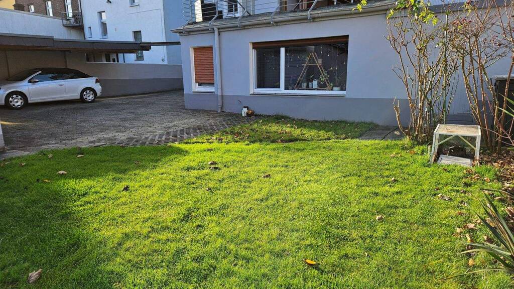 Die Erdgeschosswohnung mit ca. 97,36 m² Wohnfläche ist besonders attraktiv, da sie über einen eigenen, separaten Eingang verfügt - ein großes Plus für Privatsphäre und Eigenständigkeit. Die Wohnung bietet ein großzügiges Wohnzimmer, zwei weitere Zimmer, eine Küche, ein Badezimmer, ein Gäste-WC, Diele sowie einen Abstellraum. Ein echtes Highlight ist die überdachte Terrasse mit direktem Zugang in den Garten, die den Wohnraum harmonisch ins Grüne erweitert. Diese Einheit wurde 2018 umfassend renoviert und präsentiert sich in einem sehr gepflegten Zustand.