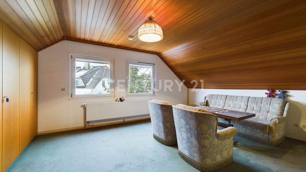 - Wohnhaus mit ca. 160 m² Wohnfläche - Erdgeschoss mit ca. 40 m² großem Wohnzimmer und drei weiteren Räumen - Dachgeschoss mit drei Räumen - Keller mit ca. 96 m² Nutzfläche - Garage - südlich ausgerichtete Terrasse - Öl-Hybrid-Heizung aus dem Jahr 2008