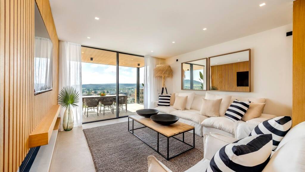 Die Penth?user bieten von ihrer privaten Terrasse aus einen herrlichen Blick auf Santa Ponsa und die umliegenden Berge, w?hrend die Wohnungen im Erdgeschoss ?ber einen eigenen Garten verf?gen.