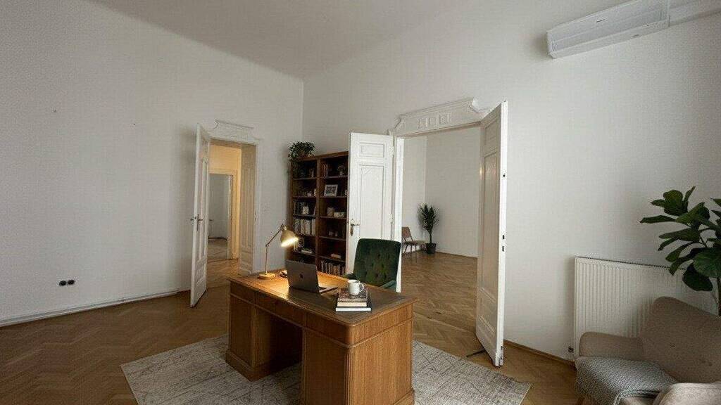 Zur Vermietung steht ein großzügiges Büro mit insgesamt 165 m2 Nutzfläche im 1. Obergeschoss, das allein oder auch durch die mögliche Zusammenlegung einer weiteren, danebenliegenden Einheiten besonders viel Platz und Flexibilität bietet.