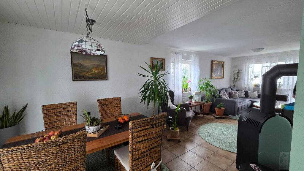 . Mehrfamilienhaus mit drei Wohneinheiten . Wohnfläche ca. 286 Quadratmeter . Grundstück ca. 600 Quadratmeter . 13 Zimmer . Acht Schlafzimmer . Drei Badezimmer . Gäste WC . Balkon und Terrasse . Einbauküchen vorhanden . Fliesen, Laminat und PVC Bodenbeläge . Wände mit Rauputz und Tapete . Holzofen im Erdgeschoss und Dachgeschoss . Anschlussmöglichkeit für Holzofen im ersten Obergeschoss . Ölzentralheizung Baujahr 2001 . Brenner 2023 erneuert . Dachfenster 2019 erneuert . Keller mit Hauswirtschaftsraum . Zwei Garagen . Ein Carport . Großer Hof . Gartenbereich . Lebenslanges notariell geregeltes Wohnrecht im Dachgeschoss . Wohnrecht klar definiert und nicht vererbbar