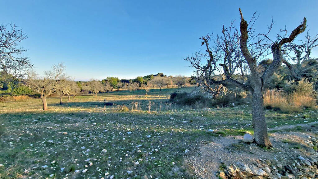 Finca-Grundstück mit 34.000 m² Land und genehmigtem Basis- Bauprojekt für ein Landhaus mit Pool bei S'Alqueria Blanca