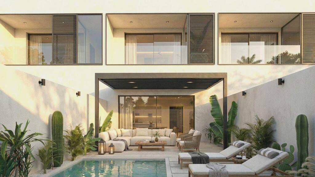 Promoción de obra nueva: exclusivas casas triplex con jardín y piscinaEste exclusivo proyecto de obra nueva consta de cuatro modernas casas adosadas tipo triplex que combinan diseño contemporáneo con máximo confort. Las viviendas destacan por su distribución bien pensada y sus espacios luminosos y abiertos, que crean una sensación de amplitud y bienestar.Cada unidad dispone de tres amplios dormitorios distribuidos en diferentes niveles, ofreciendo privacidad y funcionalidad. La zona de salón-comedor y cocina de concepto abierto constituye el corazón de la vivienda y se conecta directamente con el exterior. Allí, los propietarios podrán disfrutar de un jardín privado ajardinado con piscina propia y una amplia terraza solárium con jacuzzi, ideal para aprovechar al máximo el clima mediterráneo.El proyecto ofrece la posibilidad de personalizar ciertos acabados y detalles según las preferencias de cada comprador. Los planos presentados son orientativos; durante el proceso técnico y de construcción pueden realizarse ajustes en superficies y distribución.Ubicación: La promoción se sitúa en Santa Margalida, uno de los pueblos más auténticos del norte de Mallorca. Ubicada en una calle amplia y tranquila y, al mismo tiempo, cerca de todos los servicios esenciales, la zona ofrece un estilo de vida relajado con una excelente calidad de vida. La Playa de Muro se encuentra a solo unos 8 km, y Alcúdia, Can Picafort y Palma son fácilmente accesibles. Rodeado de naturaleza y próximo a algunas de las playas más bonitas de la isla, Santa Margalida combina a la perfección el encanto tradicional mallorquín con las comodidades modernas.