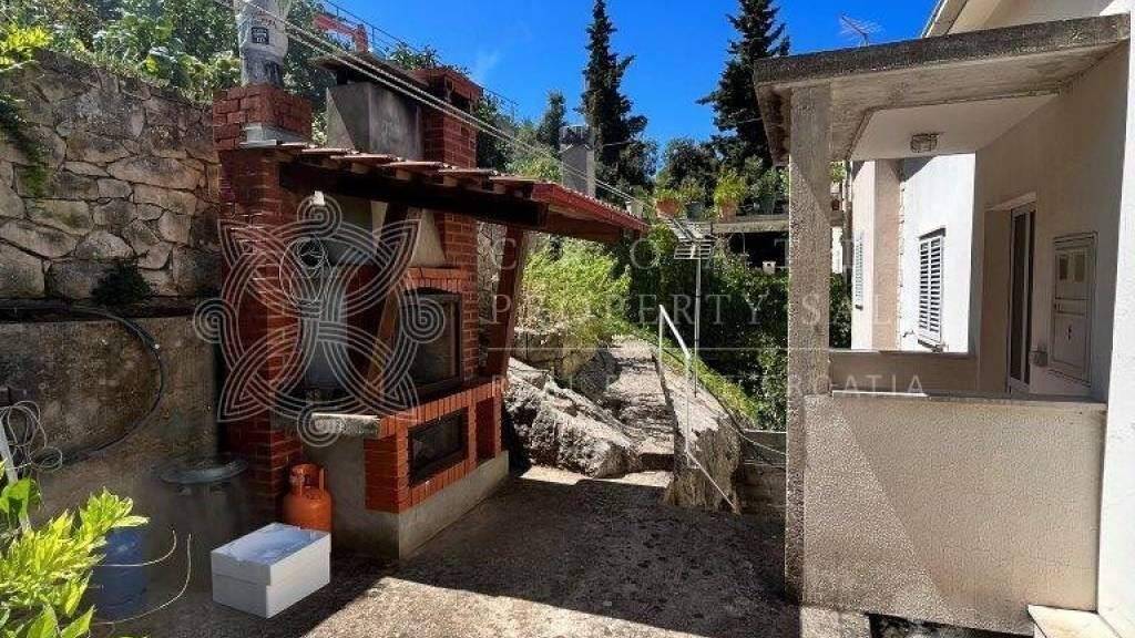 There is a garage at the seafront street, and additional parking spot in front of the garage. Also there are 2 more parking places on the upper street level above the house. Behind the house, beneath the upper street there is a garden and summer kitchen with outdoor fireplace for grilling. There are many terraces on all levels of the house, featuring amazing sea views, with lush greenery surrounding the house. On the pebble beach beneath the house there is a mooring for a boat and also used as sun deck. Pebble beach is suitable for children as there is shallow water.