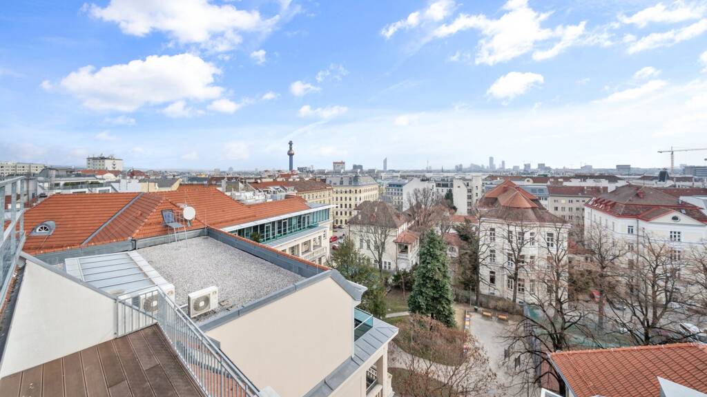Dachterrassenwohnung mit Weitblick über Wien | PKW-Tiefgarage | Parkausrichtung | 2 Terrassen (28,6m²) | 2 Gehminuten zur U6 | 9 Min. in den 1. Bezirk