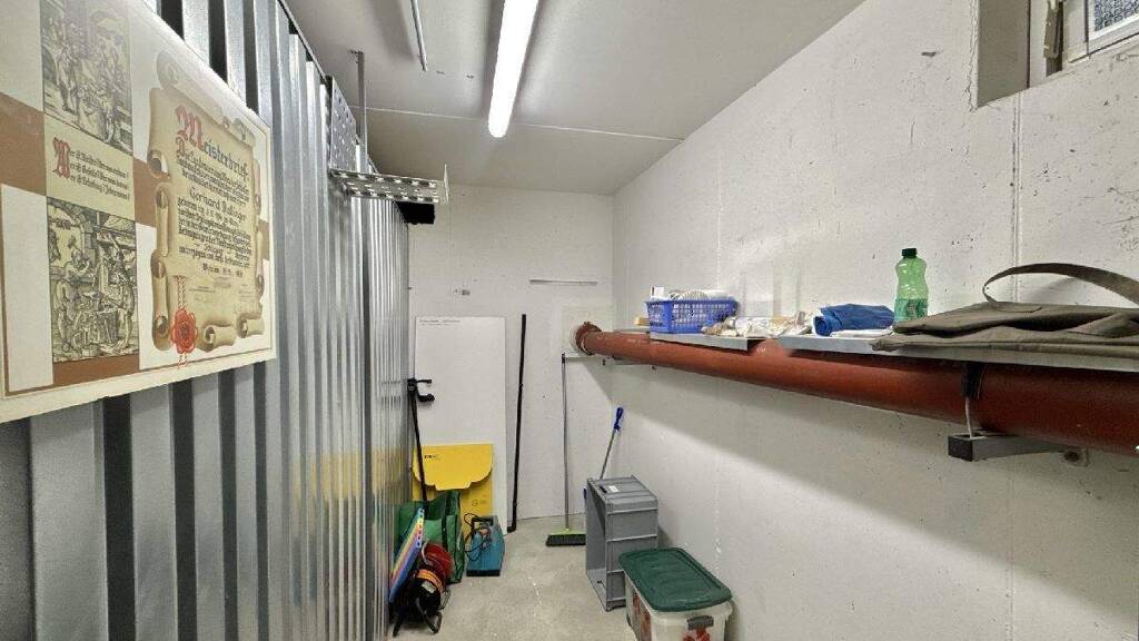 Dazu gibt es ein 5 m2 großes Kellerabteil mit Stromanschluß, auch zum Handwerken geeignet.