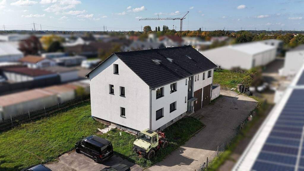 Das Objekt wurde 1963 in Massivbauweise im Gewerbegebiet Ubstadt auf dem 2.154 qm großen Grundstück errichtet, als Büroeinheit im EG und 2 Wohnungen für Aufsichts- und Bereitschaftspersonal bzw. Betriebsinhaber oder Betriebsleiter im OG, sowie eine Garage / Werkstatt mit großen, hohen Toren.