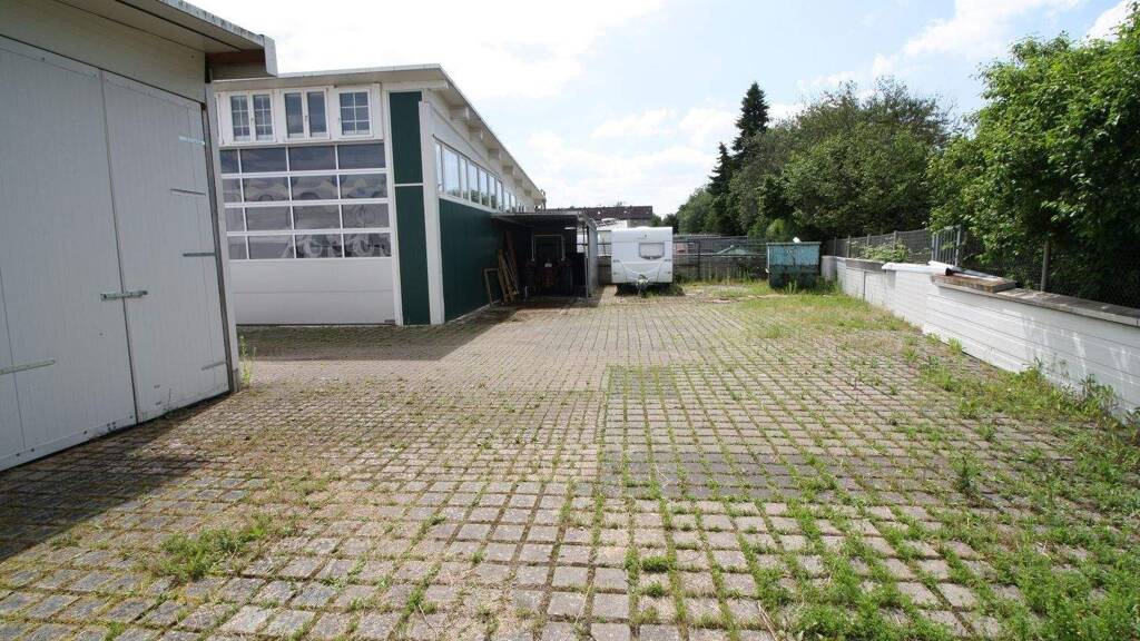 Zwei nebenliegende Grundstücke (1388 qm und 821 qm), bebaut mit mehreren Hallen (vorderer Teil Bj. 1988, erweitert um zwei Gebäude in 2002).