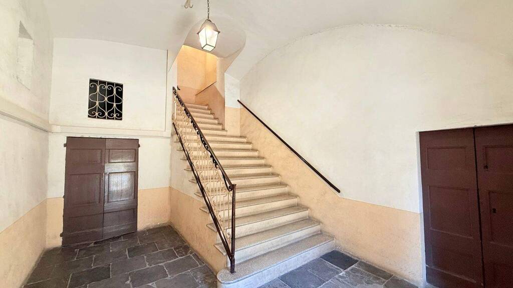 Das Gebäude beeindruckt mit einem imposanten, gemeinschaftlich genutzten Treppenhaus, das den historischen Charme des Hauses eindrucksvoll hervorhebt. Die Lage am Rand des historischen Ortszentrums von Dolceacqua bietet eine angenehme Mischung aus Ruhe und guter Erreichbarkeit – die Wohnung ist direkt mit dem Auto anfahrbar, was in diesem malerischen ligurischen Ort eine seltene Besonderheit darstellt.