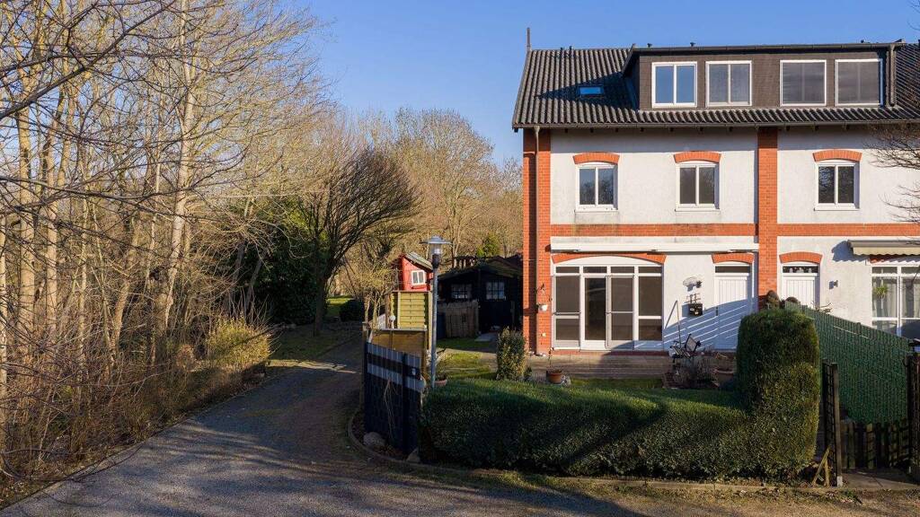 Dieses gepflegte Endreihenhaus im Lübecker Stadtteil Genin überzeugt durch seine ruhige Lage und den direkten unverbaubaren Blick auf den Elbe-Lübeck-Kanal. Auf einer Wohnfläche von ca. 133 m² und einer Grundstücksfläche von ca. 527 m² bietet die Immobilie viel Platz für Familien, die komfortables Wohnen in naturnaher Umgebung schätzen.