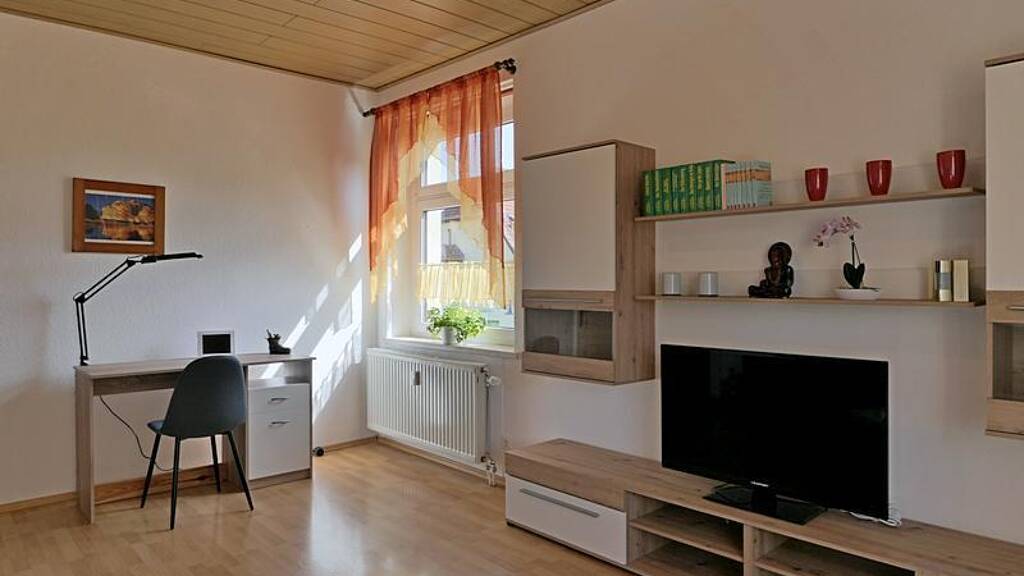 ### Please note the availability date! Bitte das Verfügbarkeitsdatum beachten! ### neu renovierte und neu möblierte Wohnung in Zwickau, OT Crossen, ruhige Wohnlage in einem Wohnhaus mit Garten; großes Wohnzimmer mit Couch, Schrankwand, TV und kleinem Schreibtisch; Schlafzimmer mit 1,40m Bett und Kleiderschrank; separate Küche mit neuer EBK und Esstisch mit Stühlen; Bad mit Wanne und Fenster; eigene Waschmaschine im Keller; Wohnungsflur mit Garderobe; WLAN inklusive; Pauschalmiete 640,00 Euro (max. 1 Person); monatlicher Heizkostenzuschlag 50,00 Euro von Oktober bis einschließlich April; Kaution 1.000,00 Euro; Endreinigung Mietersache; Reinigungsservice für 50,00 Euro möglich; Mindestmietdauer 3 Monate; Pflichtangaben zum Energieausweis: Energieausweis gültig bis: 23.07.2030; Baujahr Gebäude: 1927; Energieausweis: nach Verbrauch; Energieverbrauch: 135.1 kWh/(m²a); Energieeffizienzklasse: E; Primärer Energieträger: Erdgas H