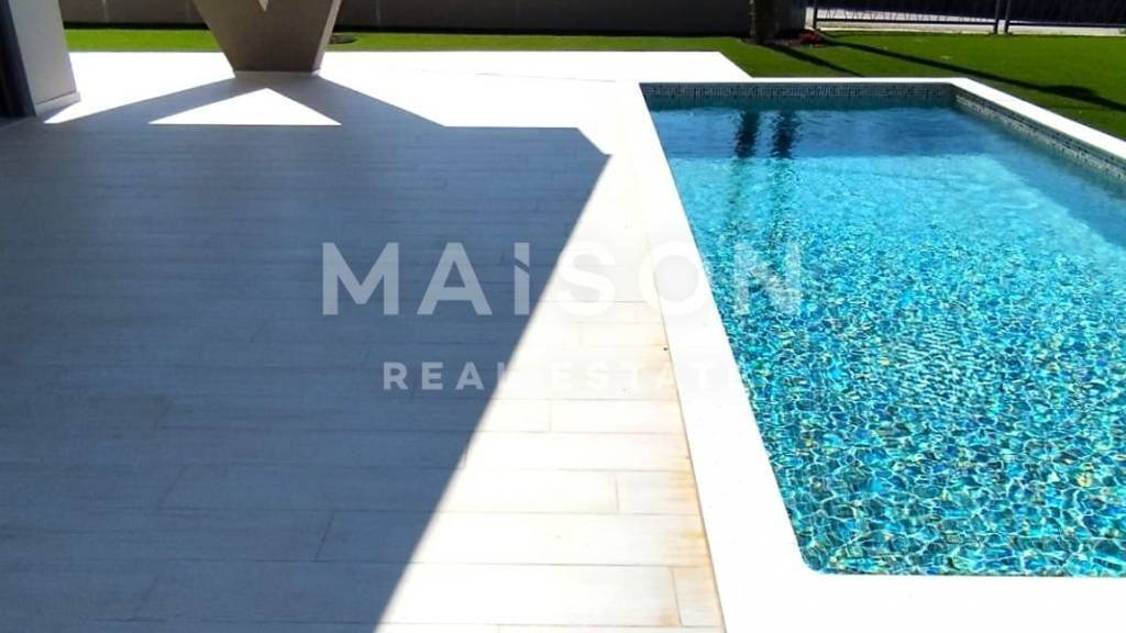 Das Grundstück ist mit mediterranen Pflanzen liebevoll gestaltet und umfasst eine Sonnenterrasse mit einem 21 m² großen Pool sowie Parkplätze für mehrere Fahrzeuge. Die Villa wird komplett möbliert und hochwertig ausgestattet verkauft - mit Fußbodenheizung, Klimaanlage, Videoüberwachung und automatischer Bewässerung - und eignet sich perfekt für das ganze Jahr.