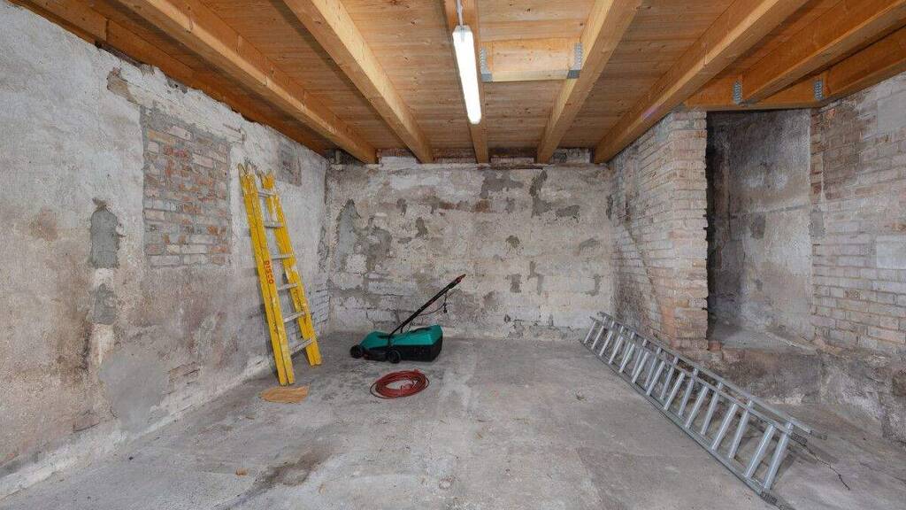 Im Untergeschoss steht ein großer Gewölbekeller, ein Abstellraum und der Heiz-/Waschraum mit Zugang zur Terrasse und zum Garten zur Verfügung.