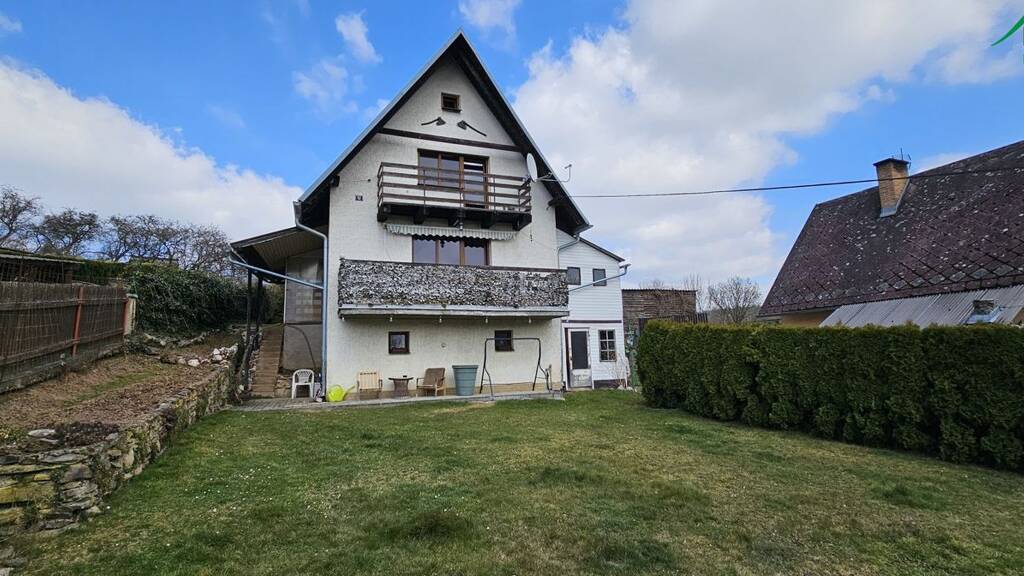 Wir bieten zum Verkauf einen Miteigentumsanteil von 1/2 an einem zweigeschossigen Wochenendhaus mit ausgebautem Dachgeschoss im Katastergebiet Koren, Gemeinde Olbramov. Das Haus mit einer bebauten Fläche von 40 m² und einer Nutzfläche von ca. 70 m² steht auf Grundstücken mit einer Gesamtfläche von 637 m².