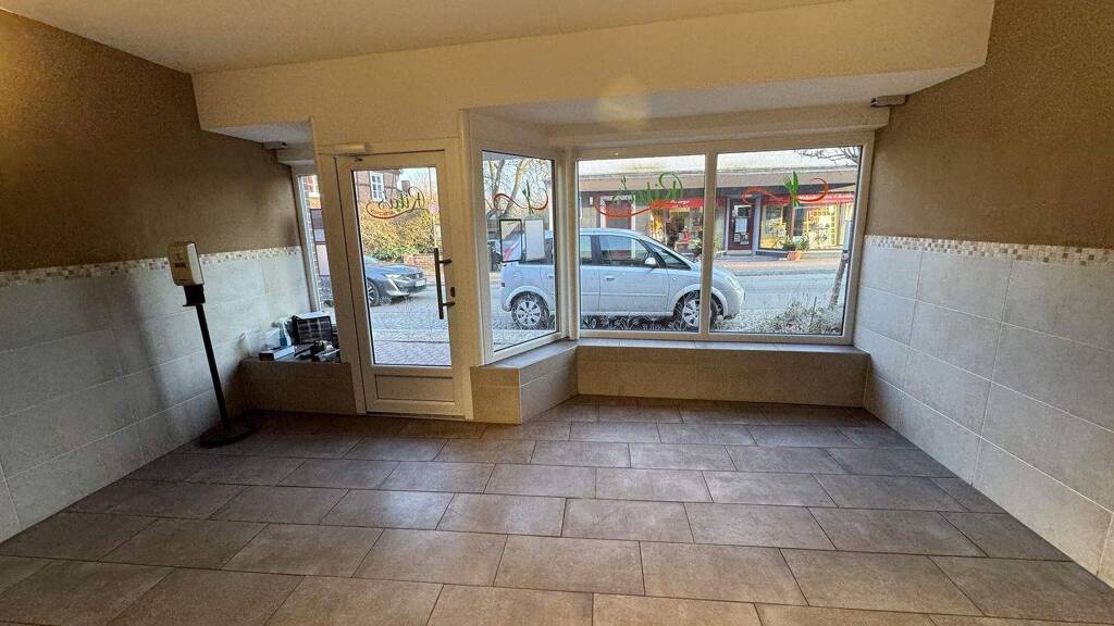 Die linke Einheit umfasst einen Verkaufs- oder Gastraum sowie einen rückwärtigen Bereich, der sich als Küche oder Arbeitsraum eignet. Ein separater Ausgang zur Seite ist vorhanden. Diese Fläche ist klimatisiert und bietet durch die vorhandenen Anschlüsse und Raumzuschnitte gute Voraussetzungen für gastronomische oder serviceorientierte Nutzungen.