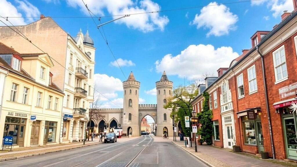 1A-Lage Die angebotene Gewerbefläche befindet sich in äußerst attraktiver und stark frequentierter Innenstadtlage von Potsdam, unmittelbar am historischen Nauener Tor in der Friedrich-Ebert-Straße. Diese zentrale Adresse zählt zu den gefragtesten Geschäfts- und Einkaufsstandorten der Stadt und zeichnet sich durch eine hervorragende Sichtbarkeit sowie eine hohe Passantenfrequenz aus.